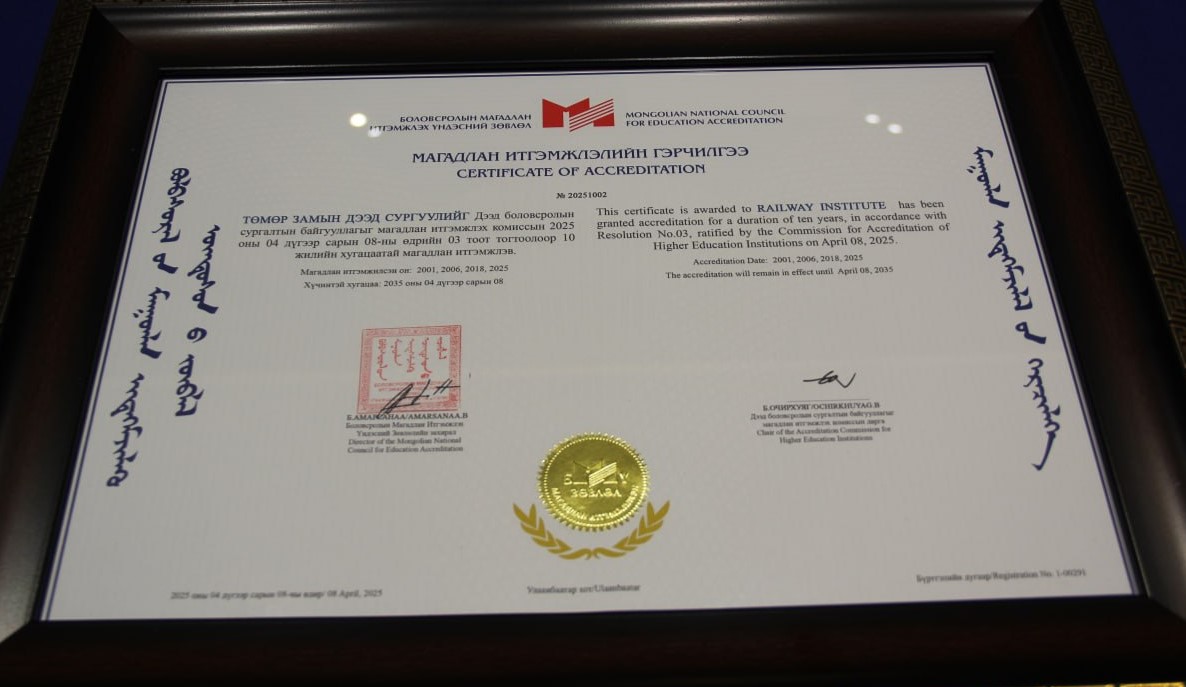 Магадлан итгэмжлэлийн баталгаажилт, магадлан итгэмжлэлийн шинжээч нарын зөвлөмж нь Төмөр замын дээд сургуулийн нэр хүндийг улам бататгаж, сургалтын чанар, гадаад харилцаа, судалгаа шинжилгээний ажлыг тасралтгүй хөгжүүлэхэд үнэтэй хувь нэмэр оруулах нь дамжиггүй. Нийт багш, ажилтнууддаа баяр хүргэж, цаашдын ажилд нь амжилт хүсье.